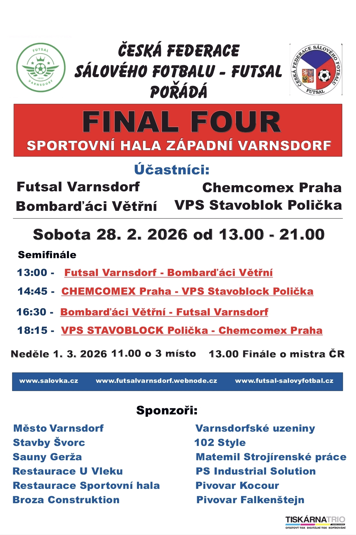 V Novém Městě na Moravě se v sobotu 7. února konalo Národní finále Českého poháru v sálovém fotbalu-futsalu. Kromě šesti ligových celků, se jej zúčastnil i vítěz poháru z jihu Čech Devianti ČB. Ze základních skupin si postup do semifinále vybojovaly týmy Varnsdorfu, Chemcomexu, Kladna a pořádající...